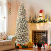 4.5ft Prelit Warm White Lights Snow Flocked Artificial Hinged Slim Pencil Christmas Tree